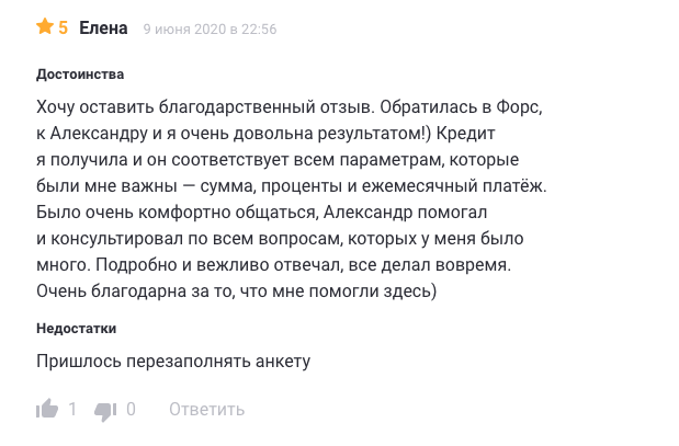 Специалист отдела кредитования "ФОРС"